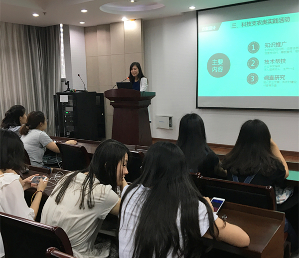 团委在理科楼C303召开了今年暑期社会实践启动说明会。本次说明会由植保院辅导员汪越老师担任主讲员,大二全体同学出席。