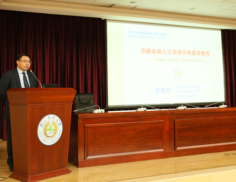 董维春副校长应邀为大会作了题为“卓越农林人才培养中的素质教育”的报告,阐述通过“本研衔接、寓教于研”的方式,培养农科拔尖创新人才。他指出要用历史和哲学的眼光看待教育,要从关心眼前问题转变为思考未来、从关心价格功利转变为关心价值远景、从技术层面上升为哲学层面。百年南农以培养卓越农林人才为使命,以建设世界一流农业大学为目标,愿与各兄弟高校一起,转变教育理念,主动适应现代农业发展需要;完善知识结构,不断加强文理学科专业建设;改革培养模式,积极构建创新人才培养立交桥;拓展学术视野,努力全球化与跨学科语境,共同致力于农科拔尖创新人才培养事业!