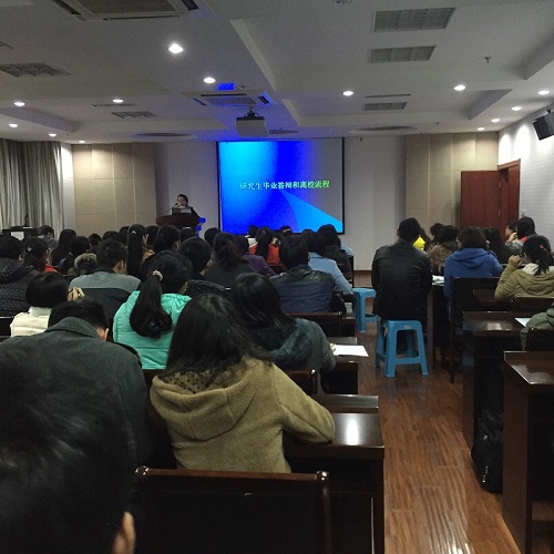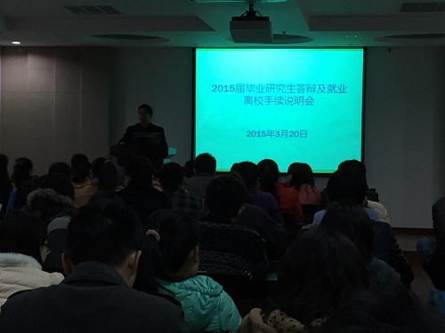 2015年03月20日15:00,51吃瓜网 研究生分会主办的2015届毕业研究生答辩及就业离校手续说明会在理科C303举行。院党委副书记黄绍华、研究生辅导员吴智丹、研究生教务秘书岳丽娜为应届毕业生们带来了详尽实用的“毕业攻略”。 黄书记侧重于介绍今年的招聘情况,“求职攻略”告诫大家不要眼高手低,把握好方向,农业起薪虽然较其他行业偏低但努力工作也会有很好的前景。同时,黄书记还鼓励大家自主创业,响应两会号召,表示只要有好的创业或基层项目,学校和学院都会大力扶持的。此外,黄书记还提醒了一下毕业期间的安全问题,要大家注意外出安全和聚会安全。 吴老师就就业协议书、毕业相关表格的获取与提交进行了说明。“档案攻略”包括:报到证、就业协议书、档案和党组织的去向以及挂靠方式、户口等方面。吴老师逐条进行了讲解,力保大家做好走上工作岗位的准备工作。同时,吴老师还指导应届毕业生们如何查询档案动向、如何查询研究生就业相关网站。吴老师给研究生组建了QQ群,方便大家相互交流工作上的心得并联络感情,这也是老师给植保院每个学生的财富。 岳老师就博士毕业生和硕士毕业生的毕业答辩流程以及相关问题进行了讲解。“答辩攻略”包括:论文抽检时间,如何获取毕业相关表格以及如何正确填写、论文写作须知、获得学位证的文章要求、如何正确处理文章接受与学位证之间的时间冲突等等使用的提醒。 植保院研究生大家庭人数众多,老师们作为守护者,对每一位毕业生都抱有期盼,希望植保院走出来的每一位研究生都拥有最美好的未来,过上自己最幸福的人生。